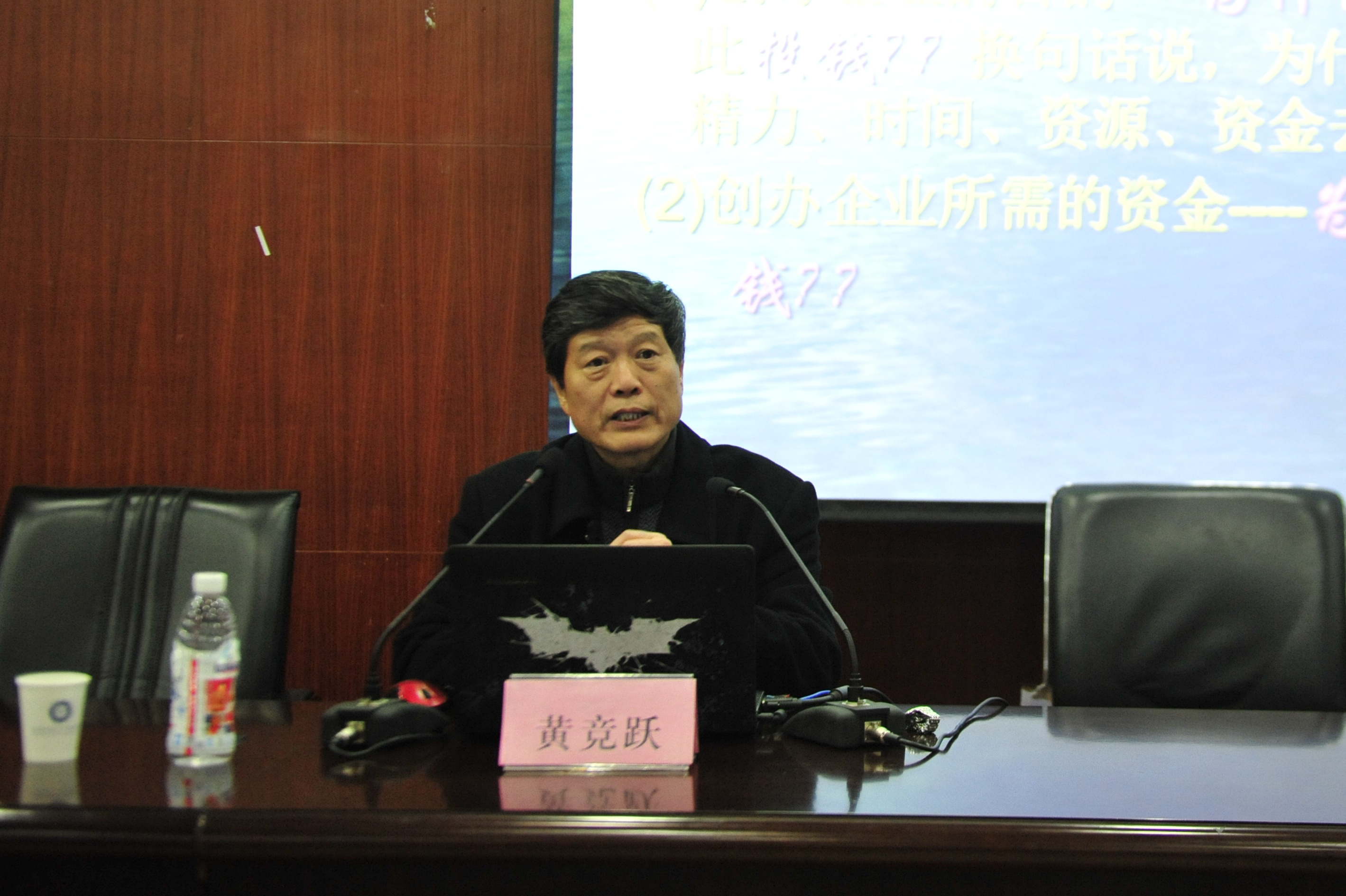 黄竞跃结合当前国家经济的发展形势和国家发展战略的调整,阐述了现阶段国家大力实施大学生创新创业教育改革的深层次目的和重要意义。他从发达国家以创业推动国家经济增长的先进经验、创新创业竞赛对国家经济发展的影响以及创新创业教育对素质教育的促进作用等几个方面分析了创新创业对国家发展的战略意义,并结合充实的案例阐释了参与创新创业大赛对大学生知识面扩充以及实践动手能力、写作表达能力、沟通合作能力以及领导能力等综合能力提升所起到的帮助作用。他教导同学们说:创新创业是这一代青年的时代主题,要主动适应经济发展新常态,充分发挥年轻人在创新、创业、创意上的活力和优势,敢于挑战、勇于创新,积极参与“挑战杯”、“创青春”等大学生创新创业竞赛,锻炼本领、增长知识、积极进取,勤于实践,努力成为适应新世纪要求的复合型骨干人才。