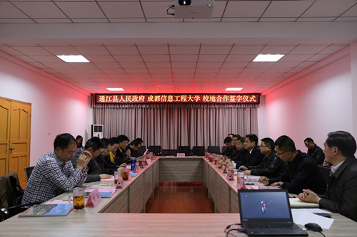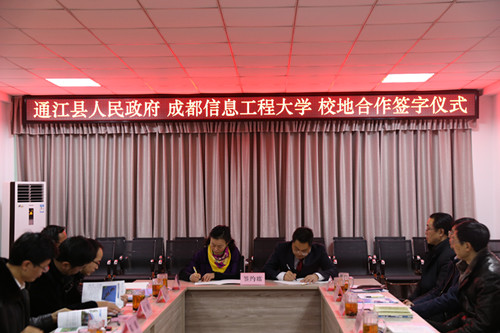 【本网讯】12月23日下午,15vip太阳集团官网与通江县人民政府校地合作签约仪式在航空港校区举行。太阳集团副校长贺盛瑜,成创空间创始人宫冠英、管理学院总支副书记杨勇、科技处副处长朱明、校团委副书记马义华、继续教育学院院长周波、软件与服务外包学院副院长邹靳等参加签约仪式,签约仪式由校地合作处处长陈麟主持。