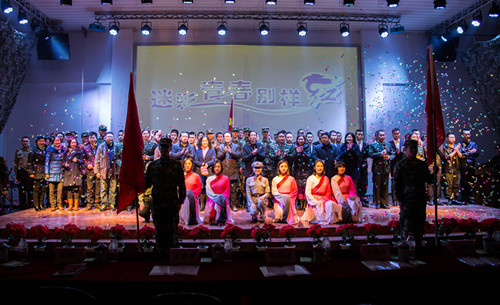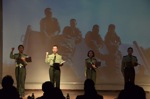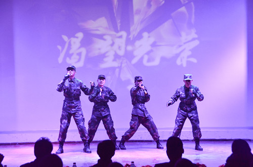 晚会以“迷彩青春别样红”为主题,节目形式多样、内容丰富,呈现出了浓郁的军旅色彩。歌曲、舞蹈、武术、朗诵以及器乐合奏等轮番上场,整场晚会高潮迭起、气氛热烈。这场兵味足、军味浓,富有国防生特色的晚会收获了现场观众的点赞,既丰富了国防生业余生活,培养了他们组织基层文化活动的能力,也向全校师生展现了国防生学子昂扬向上的激情、忠于职守的作风和勇毅刚强的品行,传递了青春绿色正能量。
