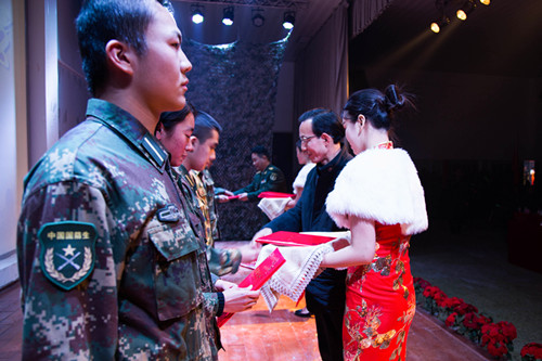 学生工作处处长戴丽红宣读学生工作处和驻校选培办《关于表彰2015-2016学年第一学期国防生先进集体和个人的决定》。25个集体,169名个人受到各级各类表彰。赖廷谦、于世祥、驻校选培办王主任为获奖集体和个人颁发荣誉证书。