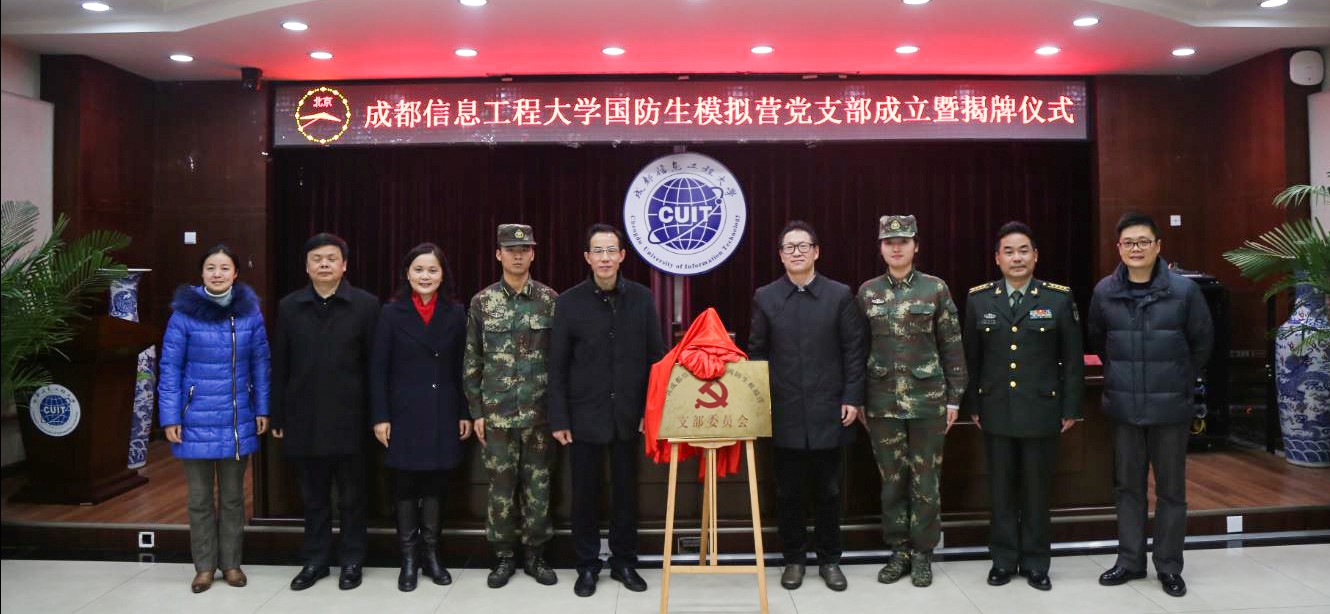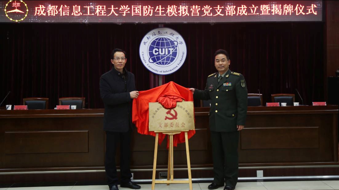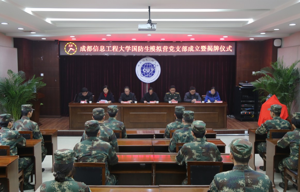 【本网讯】12月29日下午,太阳集团国防生模拟营党支部成立暨揭牌仪式顺利举行。学校党委书记赖廷谦、副校长于世祥,驻校选培办王主任、组织人事处副处长王晓锋、学生工作处处长戴丽红、大气科学学院党总支副书记缪燕平、资源环境学院党总支书记刘绍全,全体国防生党员参加了仪式。仪式由王晓锋主持。