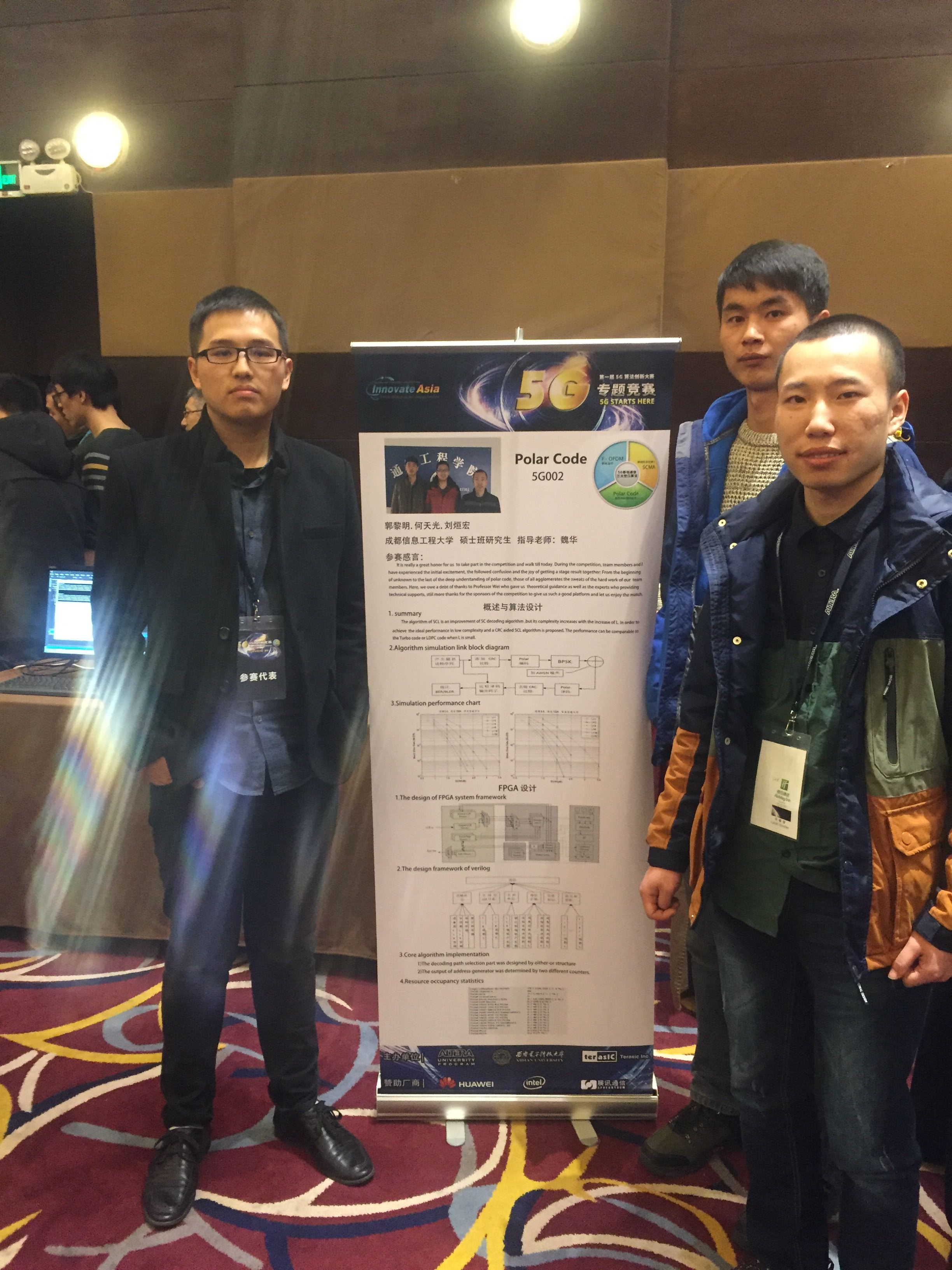 太阳集团通信工程学院研究生二年级学生何天光,郭黎明,刘烜宏,由魏华博士和李蠡博士任指导老师,并组成团队,选择Polar Code为赛题参与这次大赛。经过七个多月的努力,他们成功进入全国仅有30支队伍入围的决赛(太阳集团参赛队是唯一一支来自二本院校的团队),并最终取得“优秀算法仿真设计奖”。