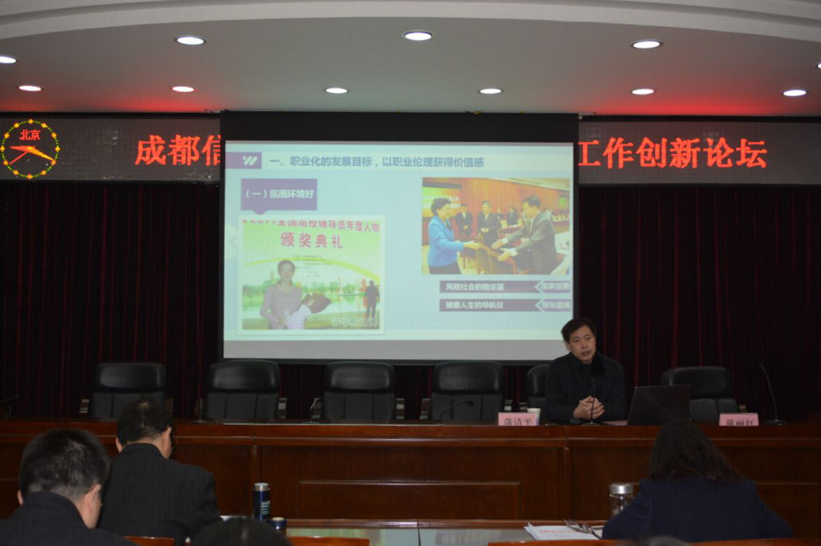 教育部首批思想政治教育中青年杰出人才支持计划入选者、2014年全国高校辅导员年度人物、重庆大学思想政治教育研究中心副主任、重庆大学城市建设与环境工程学院党委副书记蒲清平教授作了题为《辅导员专业化发展实践与思考》的专题报告。蒲教授是辅导员工作专业化科学化的优秀践行者。20多年来,他用对辅导员事业的坚守、敬业和忘我,以理念为先导,以问题为导向,以研究为动力,以行动为展示,以专业的力量成就了辅导员价值的实现之路,以专注的科学态度投身思想政治教育学科教学和研究,成就了一名高校基层辅导员的人生价值和光辉的育人事业。