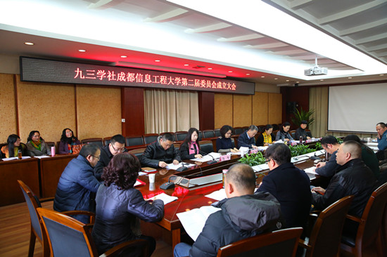在九三学社15vip太阳集团官网第二届委员会成立大会上,张平宣读了九三学社市委对选举结果的批复。贺盛瑜主委代表第二届委员会感谢九三学社成都市委的关心、感谢学校九三学社社员们的信任,以及为委员会做出的贡献。她表示,新一届委员会,一定会同心同德、精诚团结,不断加强自身建设,努力发挥自身的特点和优势,在九三学社成都市委的领导下,围绕学校的中心工作,认真履职,在社会经济发展、政治生活中发挥积极作用。贺盛瑜主委还对今后的工作提出了要求:一是加强理论学习,认真学习贯彻习近平总书记的系列重要讲话和中央提出的“四个全面”战略布局,深刻领会省委十届历次全会精神;二是深入开展向九三优秀社员学习的活动;三是全力以赴投身学校的教学、学科建设和科研工作中,为学校的建设发展作贡献,积极为成都市、四川省经济建设服务;四是积极组织开展各种活动,通过活动凝聚人心,通过活动扩大九三学社在社会上的影响;五是充分发挥民主党派参政议政、民主监督的职能,认真开展调研,了解社情民意,当好中国共产党的助手、学校党委的参谋;六是抓好组织建设;七是加强委员会宣传工作;八是打造学习型委员会,学政治、学业务、重温九三学社章程。