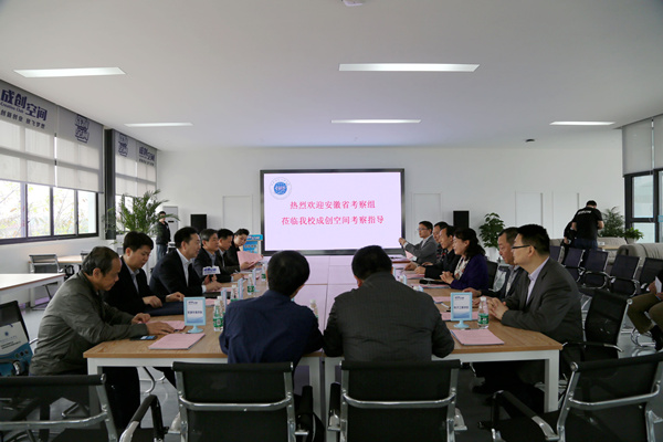 教务处实践教学管理科朱竞羽介绍了太阳集团创新创业教育工作的开展情况;宫冠英针对“成创空间”的孵化管理体系、服务模式、对外合作等内容向考察组进行了汇报。