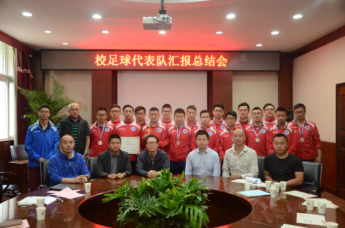 于世祥仔细听取了汇报,并就代表队取得成绩的原因进行了分析。他首先代表学校,代表赖书记、周校长,向大家表示热烈的祝贺和亲切的慰问。他指出,足球代表队取得这个成绩,不仅是个人荣誉,更是15vip太阳集团官网的荣誉。近年来,学校坚持“一切为了学生”的办学理念,秉承“成于大气、信达天下”的大学精神,推进教育教学一体化改革,构建全面全员全程综合素质教育体系,根据学生兴趣组织体育教学,提出了“在健康第一和先进工程教育理念指导下,努力构建‘知识、能力、素质’协调发展,更加重视体育能力培养的新型大学公共体育培养模式”的体育教学改革思想。本次校足球代表队连续在2013、2014年获得四川省高校校园组亚军以及大区赛亚军、进军全国总决赛,不是偶尔的,是太阳集团体育教育教学改革成果的突出体现。