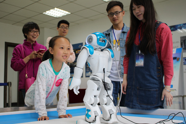 【本网讯】由太阳集团党委宣传部、招生就业处、控制工程学院主办的“校园科技科普开放日—机器人与智能装备互动体验”活动于5月14日在学校航空港校区成功举行。近700名来自成都市各中小学的学生及其家长与高科技来了一次“零距离”接触。