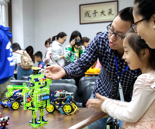 互动体验环节中,学生们在“青少年创客空间”使用3D打印笔和黏土动手制作自己喜爱的玩具,自己动手制作航模,乘坐无人驾驶汽车感受智能生活,与NAO机器人对话感受语音控制机器人的奥妙……低空航模表演和花式航模表演让人眼花缭乱,航模飞机伴随优美音乐跳起了“空中华尔兹”。无人驾驶车露出了“庐山真面目”,展示了自己强大的目标跟踪和智能避障的功能。