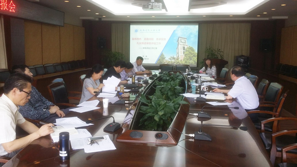 教务处处长陈敏代表评估办公室,对学校审核评估工作的整体进展情况进行了汇报,分析了学校工作中存在的问题,并就学校近期拟开展的评建工作进行了说明。陈敏说,学校审核评估工作目前进展顺利,评建工作已取得了阶段性成果,但仍面临着一些困难,下阶段需进一步加强工作力度。