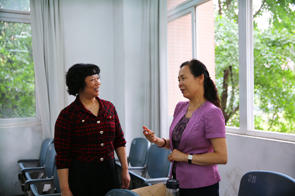 敬枫蓉与学生一起听课