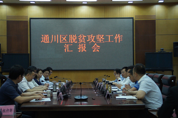 5月20日,督导组在通川区委会议室听取了通川区委、政府对脱贫攻坚的专题汇报。李新肯定了通川区脱贫攻坚工作的特点与亮点,同时指出,在督导过程中也发现了贫困村产业规划有待完善、贫困村基础设施亟待改善、对贫困户的精准帮扶力度不够、扶贫资金项目的管理使用水平有待提升、扶贫档案资料的管理还欠规范等问题。他希望在接下来的工作中,通川区能进一步做好脱贫攻坚的顶层设计和科学规划,持续改善贫困乡村基础条件,加强对贫困户的精准帮扶工作,优化扶贫资金项目管理模式,在脱贫攻坚工作中取得更好的成绩。贺盛瑜表示,通川区脱贫攻坚工作责任分工明确,工作作风扎实、阶段性成效明显,希望未来在思想扶贫、产业扶贫、教育扶贫等方面加大发展力度。