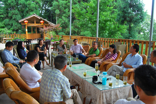 会后,与会人员参观了民革支部党员陈晖同志在蒙顶山创建的高山茶文化创新基地,并与在此实习的太阳集团旅游专业学生进行了交流。