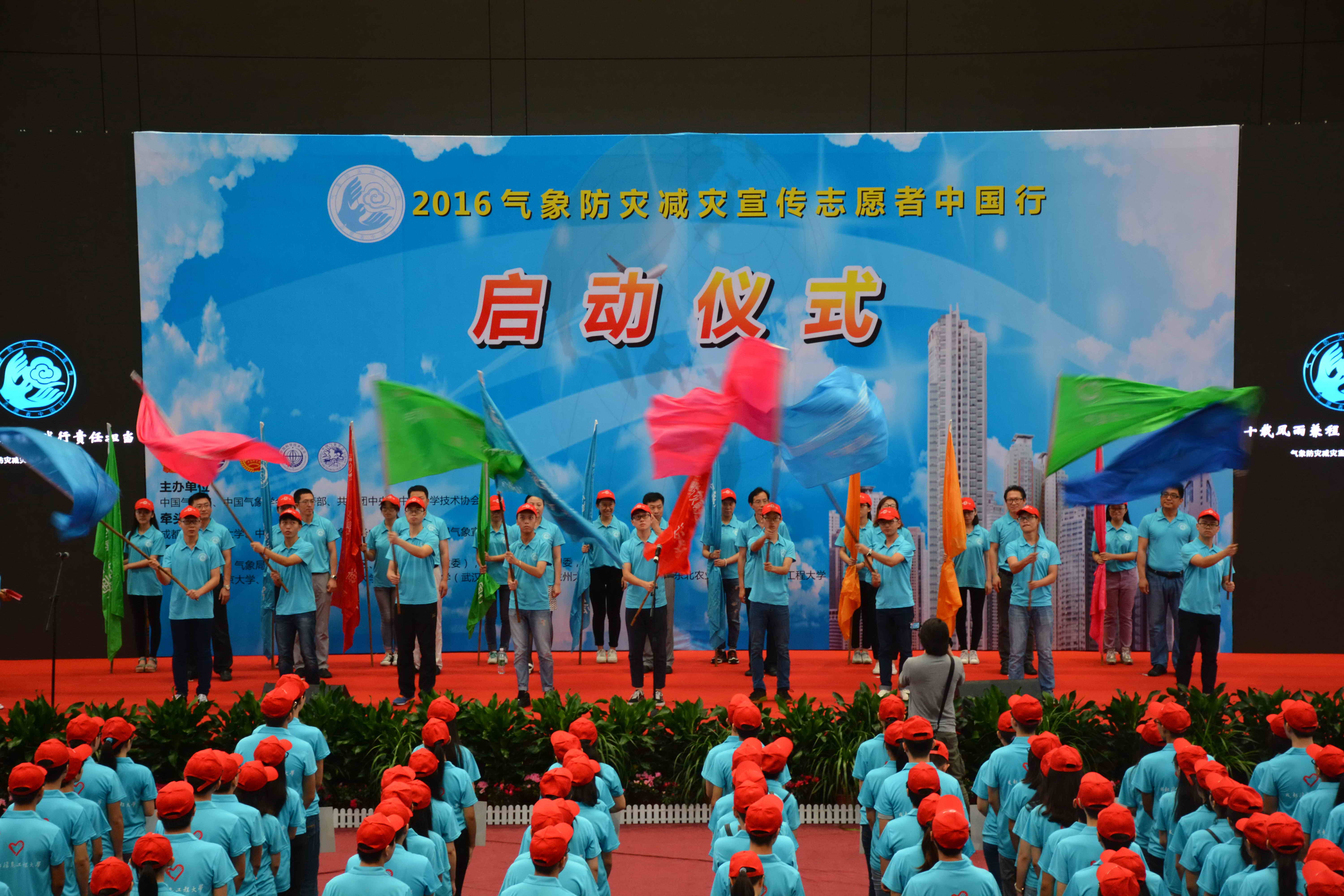 洪兰江宣布“气象防灾减灾宣传志愿者中国行”活动正式启动。启动仪式现场,与会领导向各省志愿者代表授旗,太阳集团大气探测学院学生刘远志代表志愿者领誓。