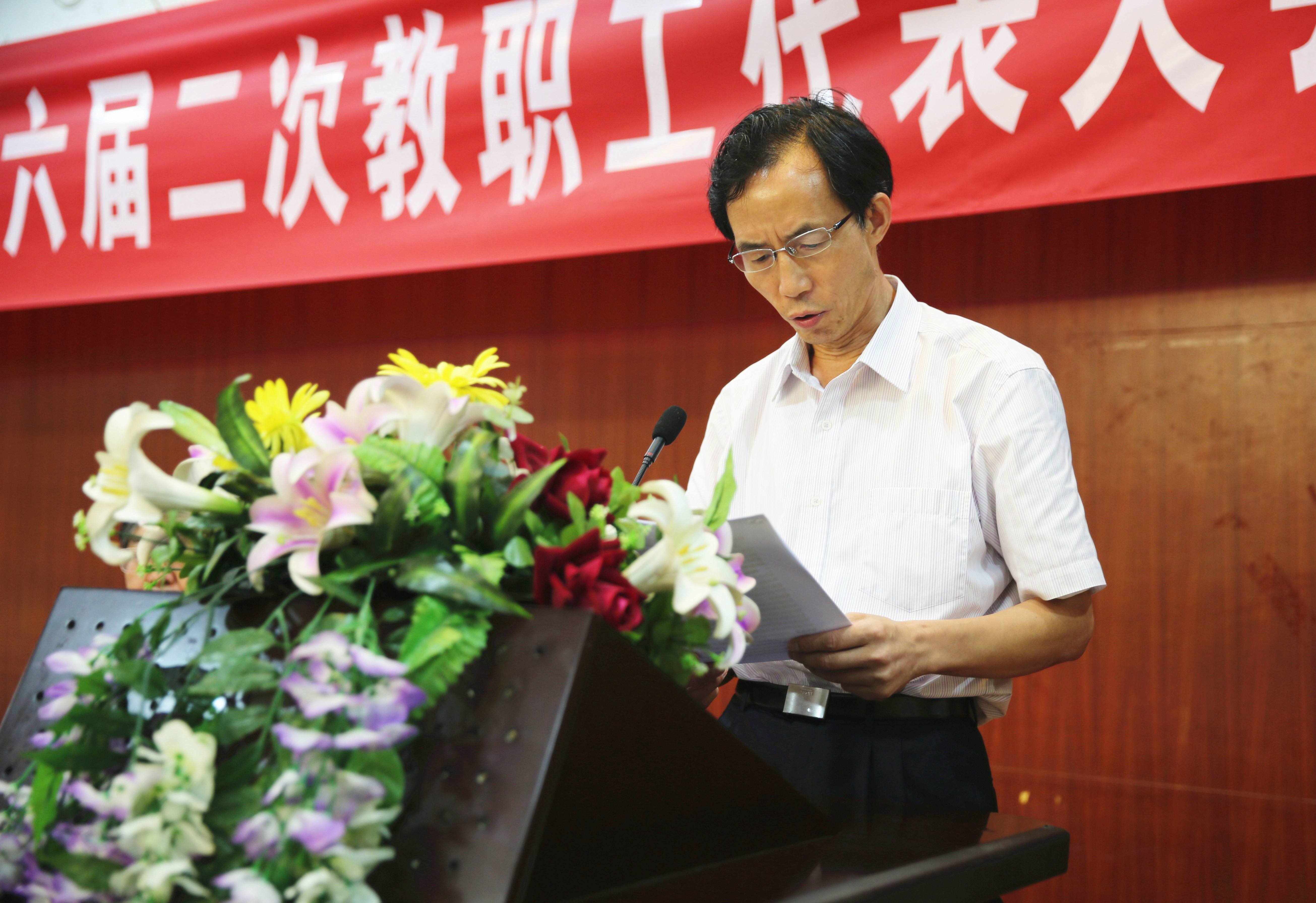 大会通过了《15vip太阳集团官网第六届二次教职工代表大会决议》,决议同意周激流同志作的《学校2015年度工作总结暨2016年度工作计划报告》、王天宝同志作的《教代会工作报告》、羊裔高同志作的《提案工作报告》、徐光友同志作的《财务工作报告》。