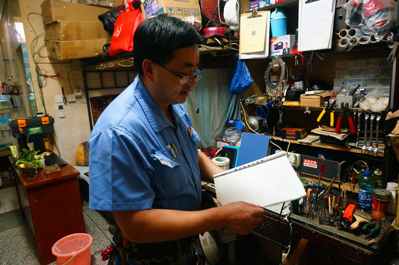 廖明全在查阅学生报修记录