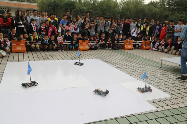 在大气观测场,小学生们近距离接触并了解了气象观测仪器的构造和作用,以及气象要素采集过程。在气象实习台,小学生们感受了天气会商,了解到了气象工作者是如何进行天气预报。在环境科普基地,小学生们测试了水质的酸碱性、探寻了人工湿地的奥秘。在控制工程学院创新实验室展区,小学生们与NAO机器人对话、共舞,亲自操控智能小车,观看低空航模表演和花式航模表演,乘坐无人驾驶汽车,充分感受了智能生活。在“青少年创客空间”,小学生们使用黏土动手制作了自己喜爱的玩具……