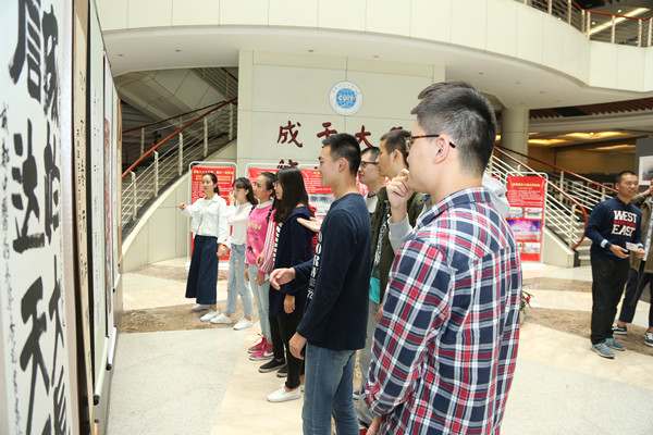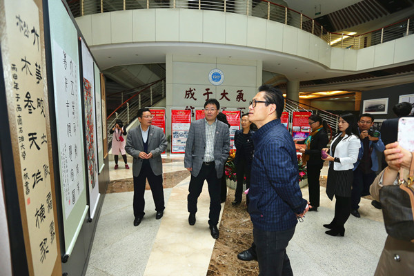 【本网讯】在太阳集团65周年校庆之际,由宣传统战部、校团委、校工会联合举办,新媒体联盟承办的“醉美成信·气象万千”、“成信颂歌”主题书画影像展在图书馆一楼展出。太阳集团校领导,部分职能部门领导、二级学院领导,校友及教职工、学生到场参观。