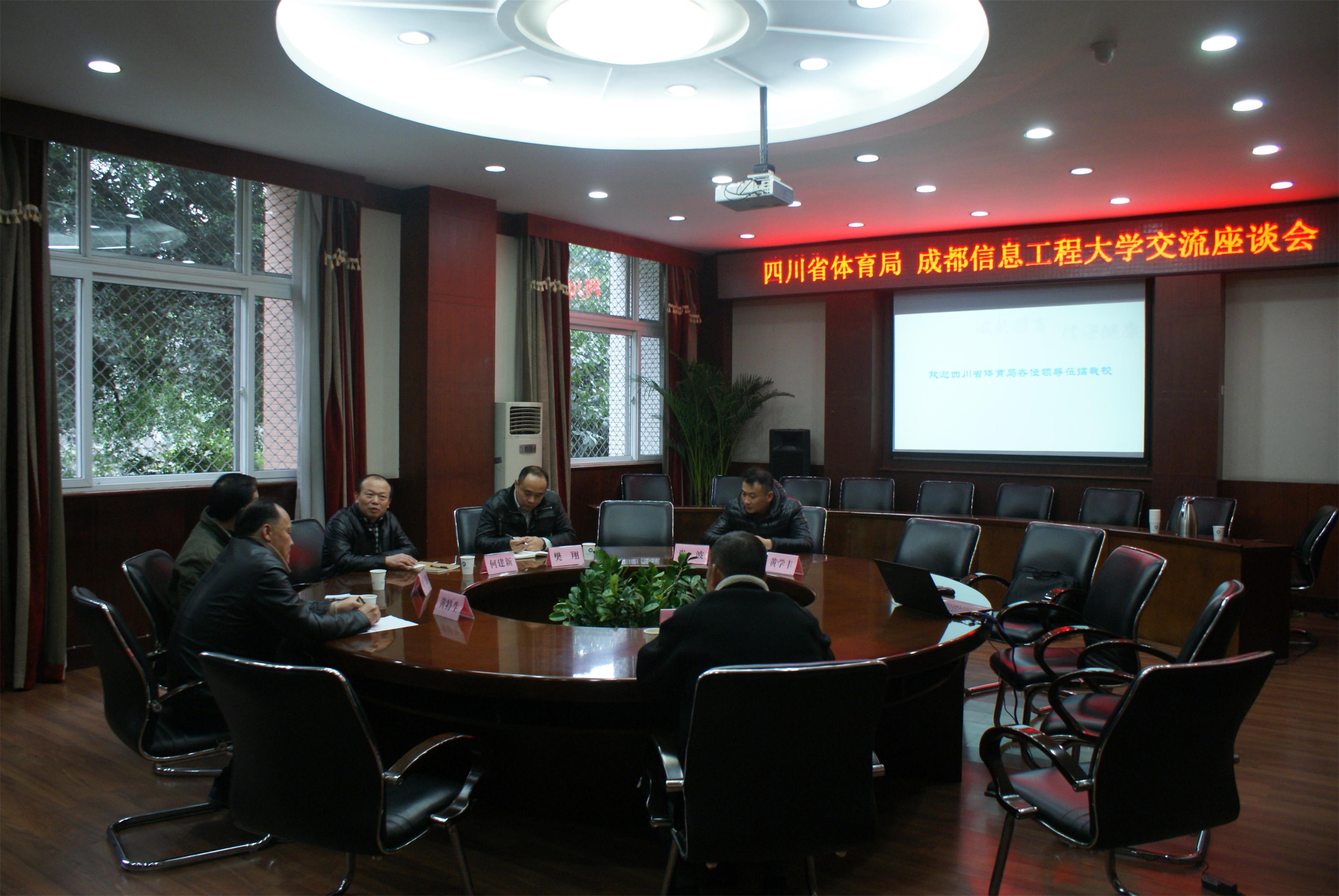 【本网讯】11月22日下午,四川省体育局副局长刘践、竞赛处处长黄特生、拳跆中心主任康翔一行来太阳集团进行工作交流。学校副校长何建新,体育部副主任樊翔、体育部党政办、教务办负责人与刘践一行进行了会谈。