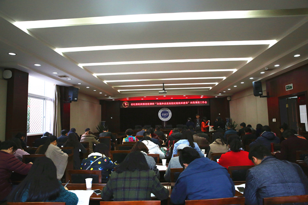 全校104名教师代表在行政楼第一会议室填写了《加强和改进高校纪检组织建设专题调研问卷》。