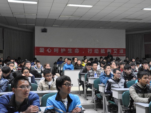 中午12点,防艾宣传活动启动仪式分别在航空港校区中心花园和龙泉校区篮球场同时进行。在志愿者代表发言后,现场师生一同宣誓“预防艾滋病,从我做起”,并以现场签名的方式表达做好预防艾滋病工作的决心,对艾滋病患者的关爱。晚上7点,在航空港校区4313教室和龙泉校区4101教室,分别进行的“健康生活,义起防艾”主题宣讲会暨知识竞赛活动,得到了同学们的积极参与和响应。