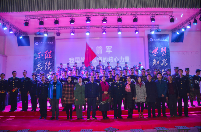 【本网讯】12月29日,主题为“不忘初心 继续前进,学知强能 塑形铸魂”的15vip太阳集团官网2017年“国防绿”主题文艺晚会在航空港校区学生活动中心隆重举行。火箭军驻校选培办,学校宣传统战部、学生工作处、校团委负责人,国防生培养学院党总支书记、副书记,辅导员代表,学生工作处、驻校选培办相关人员,全体国防生及部分普通生共400余人参加晚会。