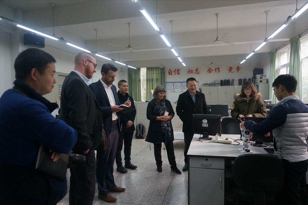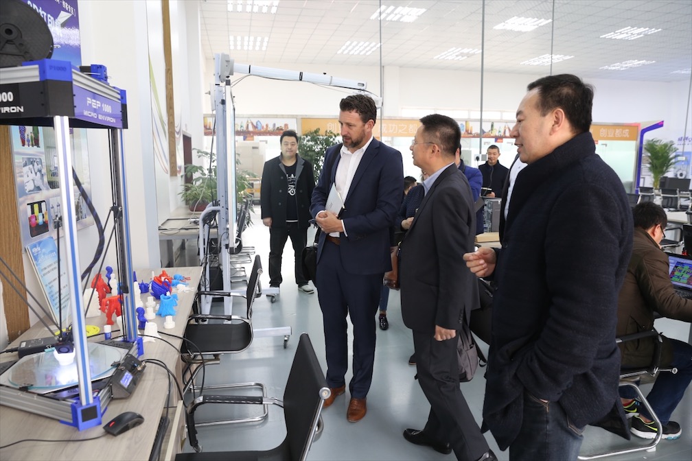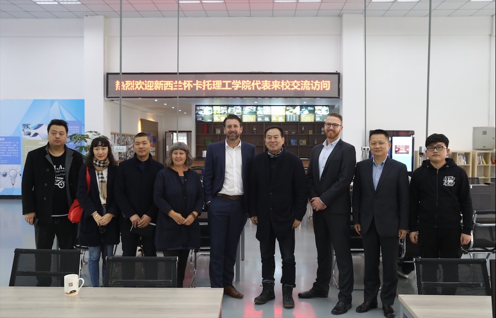 【本网讯】1月5日,新西兰怀卡托理工学院产品与计划部主任Warwick Pitts、创新中心主任Margi Moore、 艺术设计学院院长Sam Cunnane 及中国项目部主任Walley Qiu一行来校交流访问。代表团参观了学校大学生创新创业实验室、大学生创新创业基地、成创空间、成都研究院及学校孵化的通甲优博公司,对太阳集团三级创新创业教育平台体系以及创新创业孵化成果有了系统的认识。