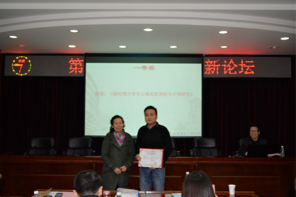 敬枫蓉宣读了《15vip太阳集团官网关于表彰第九届学生工作创新论坛优秀论文的决定》和《关于公布15vip太阳集团官网第五届辅导员职业能力大赛评选结果的通知》。大会对童强撰写的《新时期大学生心理危机预防与干预研究》等11篇获奖论文和第五届辅导员职业能力大赛获奖老师给予了表彰,鼓励各位老师再接再厉,再创佳绩。