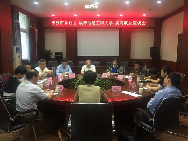 【本网讯】5月25日上午,宁波市北仑区与太阳集团实习就业座谈会在航空港校区第六会议室召开。宁波市北仑区副区长孙秀芳、人力资源和社会保障局局长章文夫、副局长杨宏伟,太阳集团副校长何建新、招生就业处处长卢宗元、教务处副处长易平、控制工程学院党总支书记邓丽琴、控制工程学院副院长严寒冰等参加了此次座谈会。