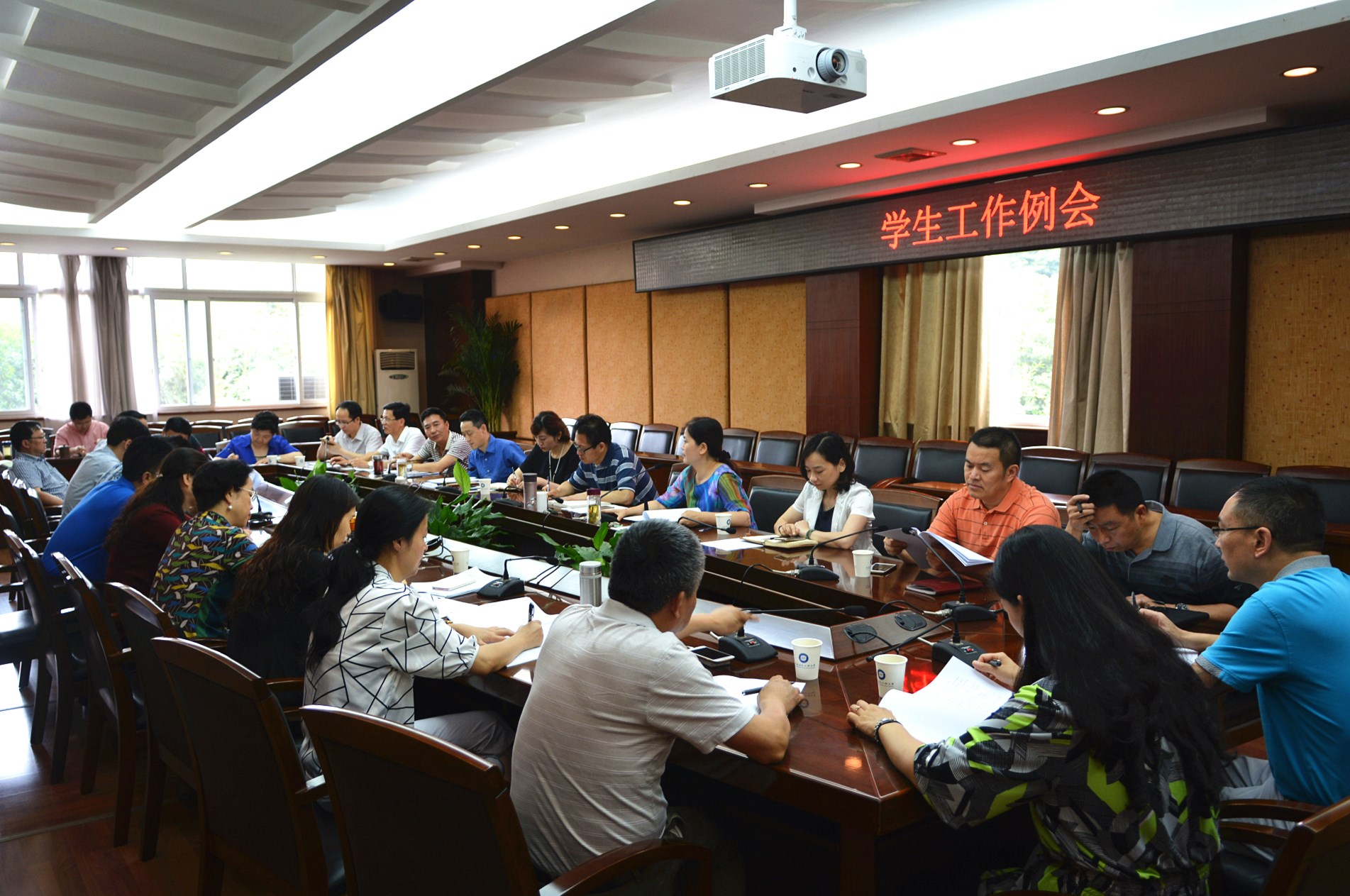 【本网讯】6月1日上午,学校在航空港校区行政楼第七会议室召开学生工作例会。学校副校长于世祥,宣传统战部、学生工作处、教务处、后勤管理处、招生就业处、保卫处、校团委负责人,各学院党总支书记、副书记,学生工作处相关人员参加了会议。会议由学生工作处处长戴丽红主持。