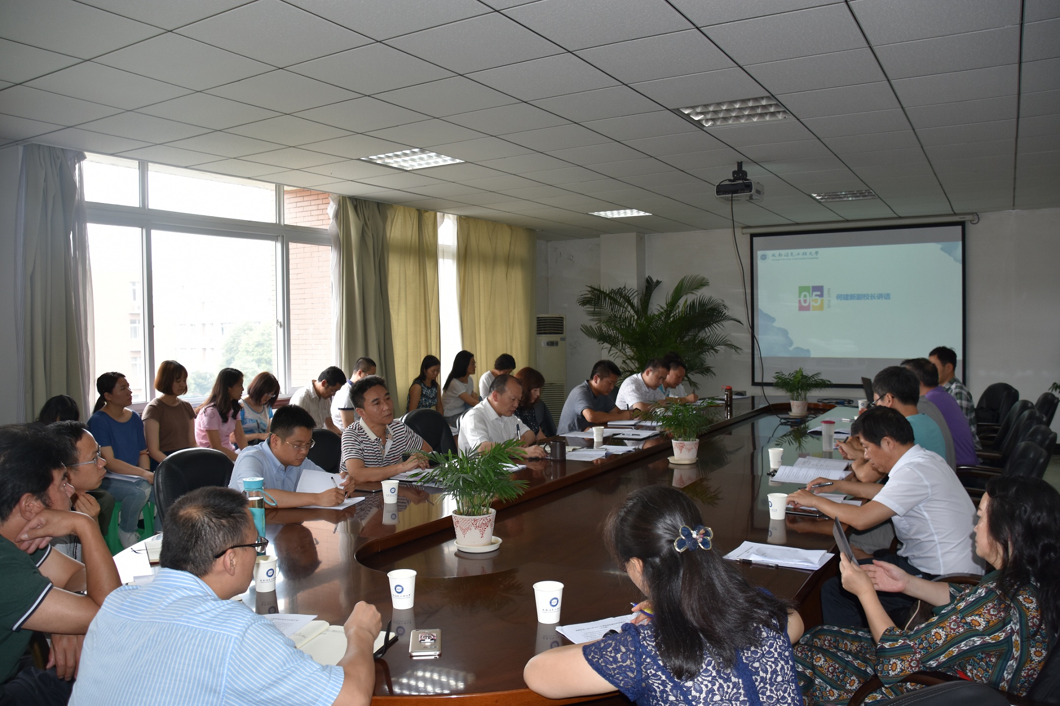 【本网讯】6月21日下午,学校在航空港校区第九会议室召开本学期期末教学工作例会,副校长何建新,各教学单位相关负责人、教务办主任、教学秘书,教务处负责人及工作人员参加了会议。会议由教务处处长陈敏主持。