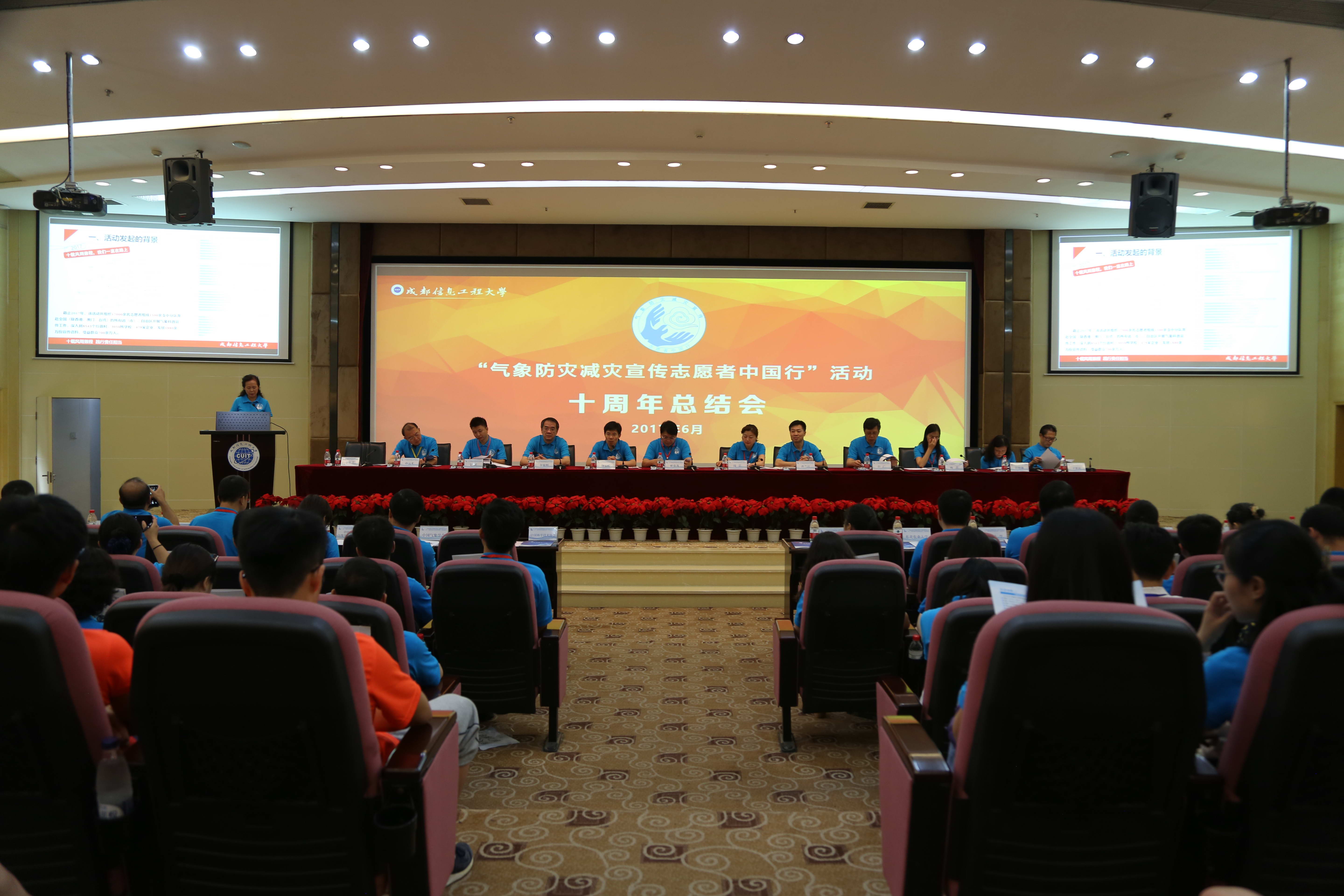 太阳集团党委副书记敬枫蓉代表承办单位作“气象防灾减灾宣传志愿者中国行”活动十周年总结发言。她说,自2007 年起,学校结合自身专业特色、学科优势和社会需求,发动广大青年学生在全国持续开展气象科普志愿服务工作。10年来,活动扩展至12所高校,范围扩展至除港澳台外的全国各省、市、自治区的农村、厂矿、中小学校、社区。十年间,科普宣传工作不断深入,实践育人成效不断增强,气象科普作品不断丰富,品牌影响力不断扩大,活动还成功纳入《国家气象灾害防御规划(2009-2020年)》和中国科协事业发展“十二五”“十三五”规划,曾先后荣获2009年中国气象局创新工作特别奖,2011年中国地方政府创新奖特别奖。