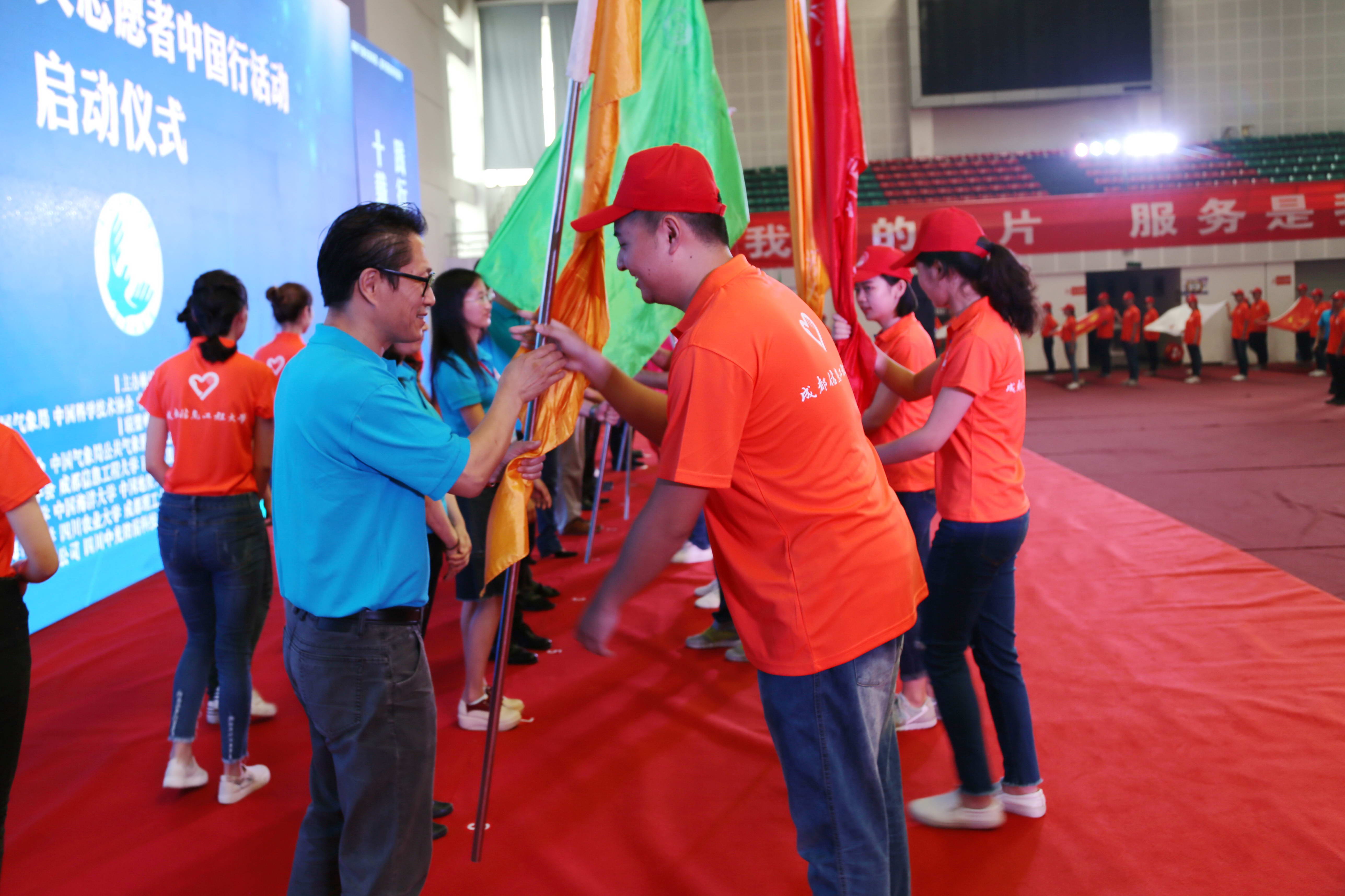 钱岩宣布“气象防灾减灾宣传志愿者中国行”活动正式启动。启动仪式现场,与会领导向各省志愿者代表授旗,太阳集团大气科学学院学生李杨莲代表志愿者发言并领誓。