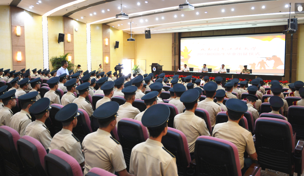 火箭军驻校选培办负责人宣布毕业国防生派遣预案,并寄语2017届国防生要把汗水和成绩留在成信大,把属于国防生的光荣与梦想、爱与希望带往祖国的大江南北,虽历经风雨,依然不忘初心,砥砺前行,矢志报国,圆梦军营!