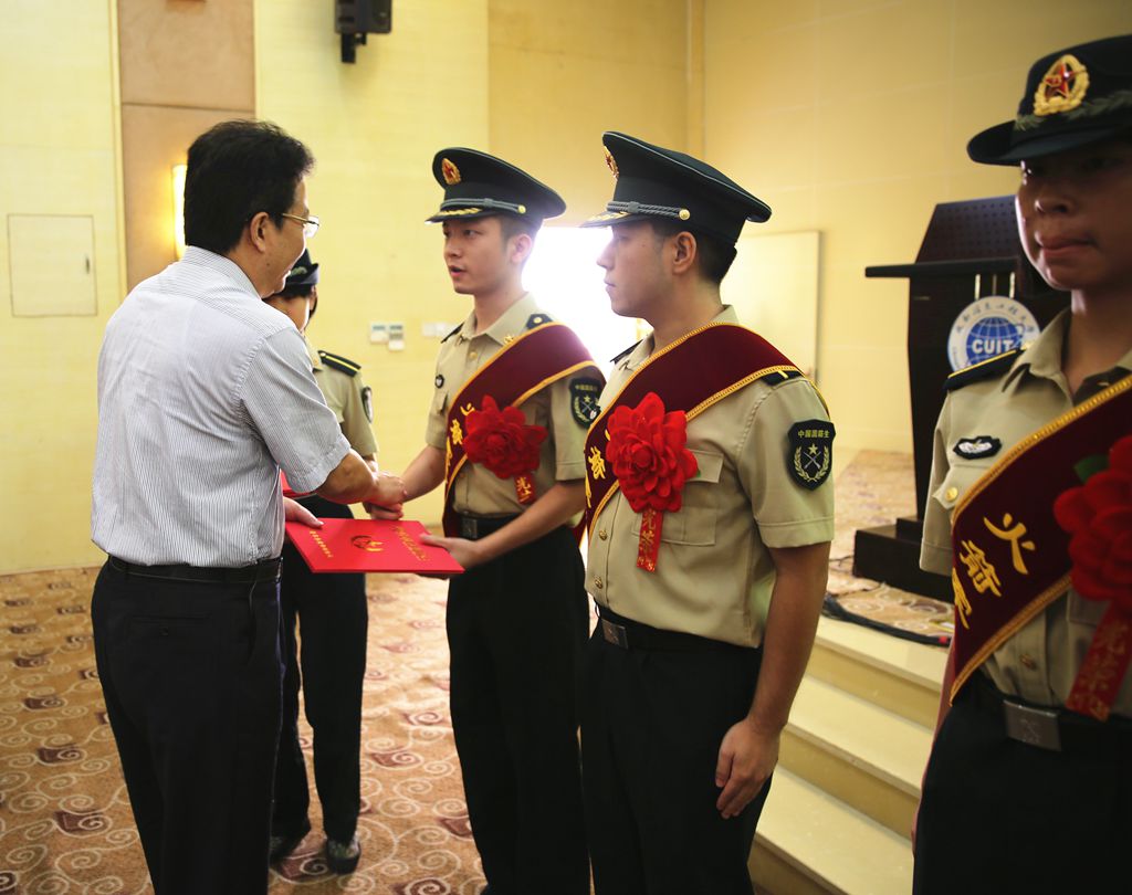 周激流宣读了《关于表彰2017年度火箭军优秀毕业国防生的通报》和《关于表彰15vip太阳集团官网2017届优秀毕业国防生的决定》。与会学校领导与火箭军驻校选培办王主任为综合素质突出、志存高远、勇于担当的太阳集团2017届火箭军优秀毕业国防生和校级优秀毕业国防生颁发了荣誉证书并合影留念。