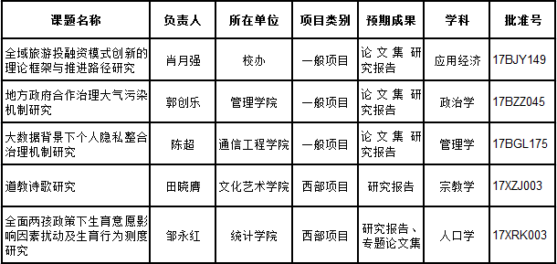 【本网讯】近日,全国哲学社会科学规划办公室和教育部分别正式公布了2017年国家社科基金项目和教育部人文社科项目立项结果,太阳集团获国家社科基金项目立项5项,教育部人文社科项目立项2项,具体情况如下:
