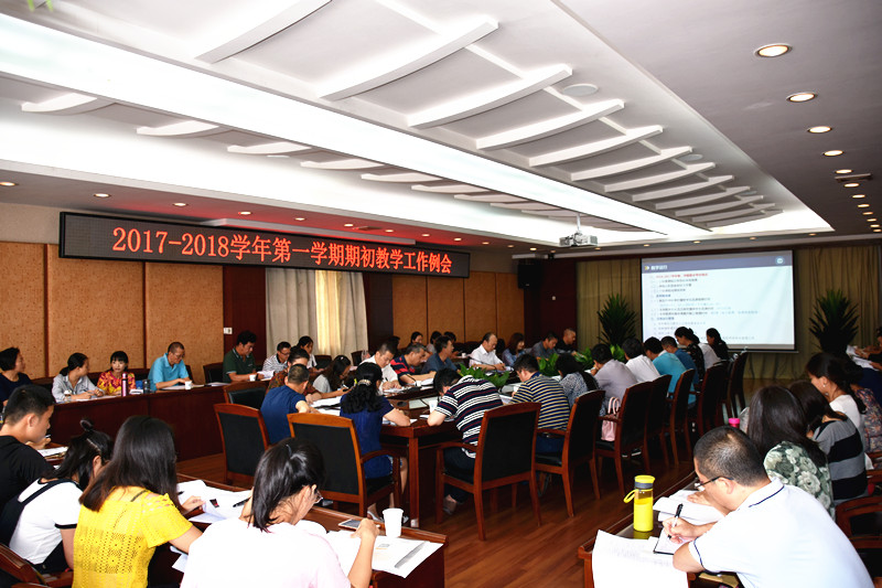【本网讯】9月7日下午,学校在航空港校区第七会议室召开了新学期期初教学工作例会,部署新学期教学工作。副校长何建新,各教学单位主管教学院长(主任)、教务办主任、教学秘书,国际交流与合作处、教务处负责人及工作人员参加了会议。会议由教务处处长陈敏主持。