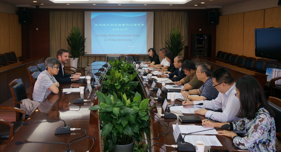 【本网讯】9月21日上午,澳大利亚拉筹伯大学(La Trobe University)校长助理Damian Spencer博士、计算机学院院长Henry Du教授一行到太阳集团访问交流。学校副校长何建新在行政楼第七会议室与来访客人进行会面,并就合作事宜进行会谈。会议由国际交流与合作处副处长刘伟主持。