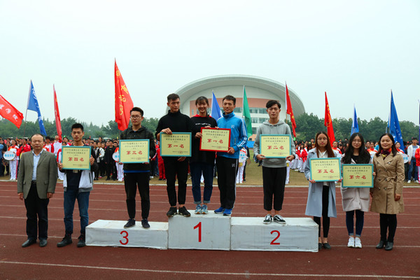 【本网讯】10月28日下午,学校2017年田径运动会在航空港校区圆满落幕。学校副校长于世祥、何建新,相关职能部门负责人、各学院党总支书记参加了闭幕式并为获奖代表队和运动员颁奖。