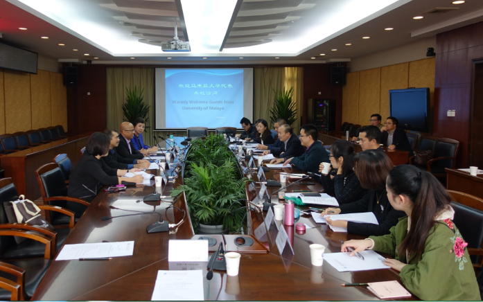 何建新对努尔·阿祖安一行表示热烈欢迎,对四川省教育厅给予太阳集团对外交流合作工作的支持表示感谢,并介绍了太阳集团的基本情况。努尔·阿祖安从师资队伍、学生培养与就业、校企合作、研究中心等方面介绍了马来亚大学和工程学院的基本情况,刘蓉详细介绍了马来亚大学目前可以开展合作的学生和教师交流项目。廖飞说,马来亚大学是亚洲的一流大学,同时也是“一带一路”沿线的重点高校,希望各参会院校抓住机遇,通过与马来亚大学的深入交流,积极开展实质性的合作。