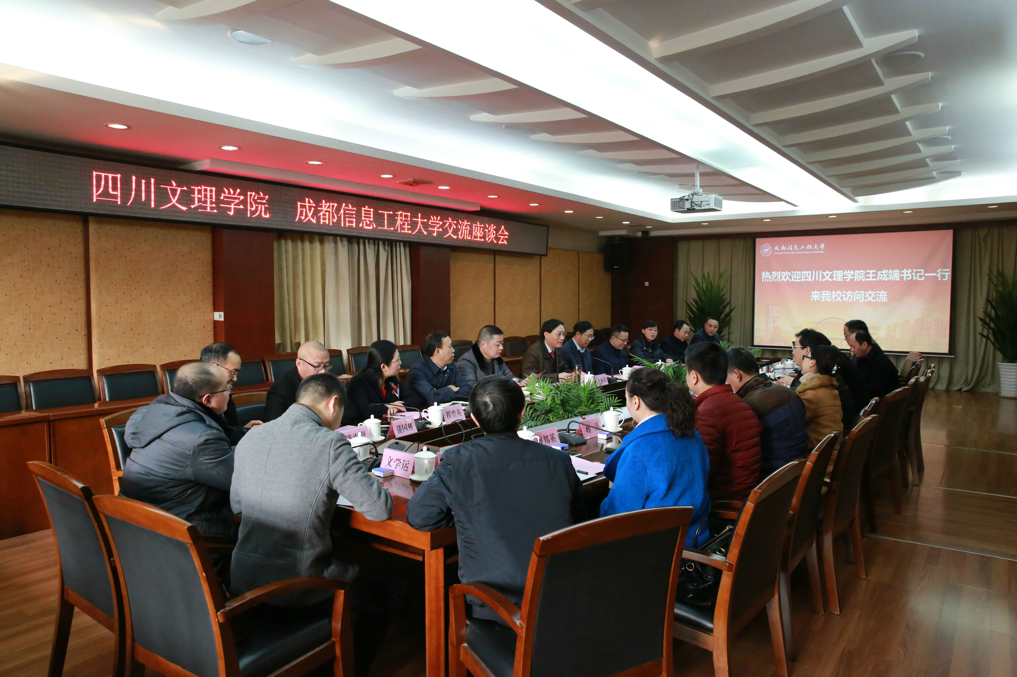 【本网讯】12月26日下午,四川文理学院王成端书记一行来校交流座谈。学校党委书记周激流主持座谈会。四川文理学院党委副书记、校长刁永锋,党委副书记、纪委书记雷超,副校长朱兴华,太阳集团副校长于世祥,以及两校相关职能部门和学院负责人等参加了座谈。