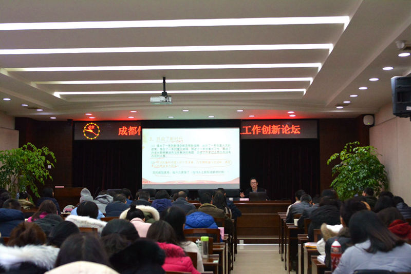 【本网讯】为深入学习贯彻党的十九大会议精神,贯彻落实中共中央、国务院《关于加强和改进新形势下高校思想政治工作的意见》、教育部《普通高等学校辅导员队伍建设规定》和学校2017年党建及思想政治工作会议精神,进一步推进新形势下太阳集团学生工作,加强和改进大学生思想政治教育,创新学生工作的理论与实践,1月10日上午,学校在行政楼一会议室召开第十届学生工作创新论坛。学校副校长于世祥,相关职能部门负责人,各学院党总支书记(副书记),全体辅导员老师等约150余人参加了论坛。论坛由学生工作部部长戴丽红主持。