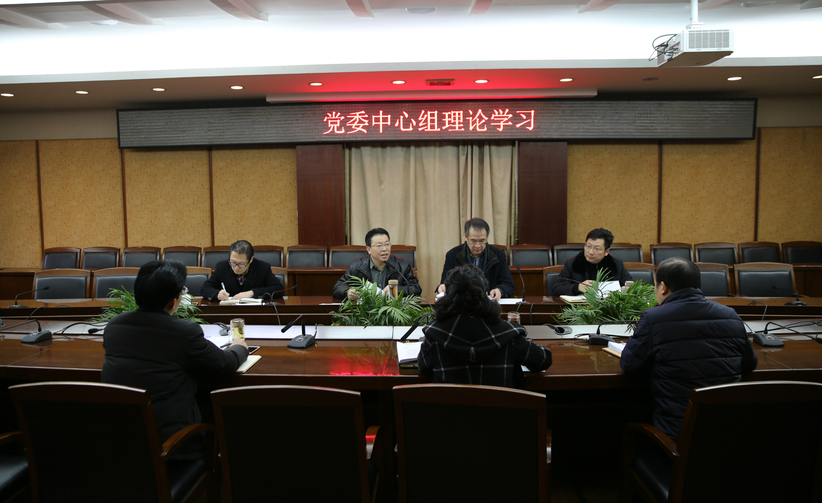 【本网讯】1月18日,学校党委中心组在第七会议室专题学习党的十九大和省委十一届二次全会精神。全体中心组成员参加了学习会,党政办公室、组织部、宣传部主要负责人列席会议。会议由党委书记周激流主持。