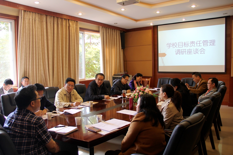 【本网讯】4月8日,校长余敏明带队赴龙泉校区就目标责任管理工作进行调研,并在龙泉校区行政楼第一会议室召开了座谈会。副校长于世祥、马洪江、贺盛瑜、肖月强,党政办公室、党委组织部、教务处、研究生处、计划财务处、科技处、统计学院、管理学院、商学院、物流学院、文化艺术学院相关负责人等参加了会议。会议由于世祥主持。