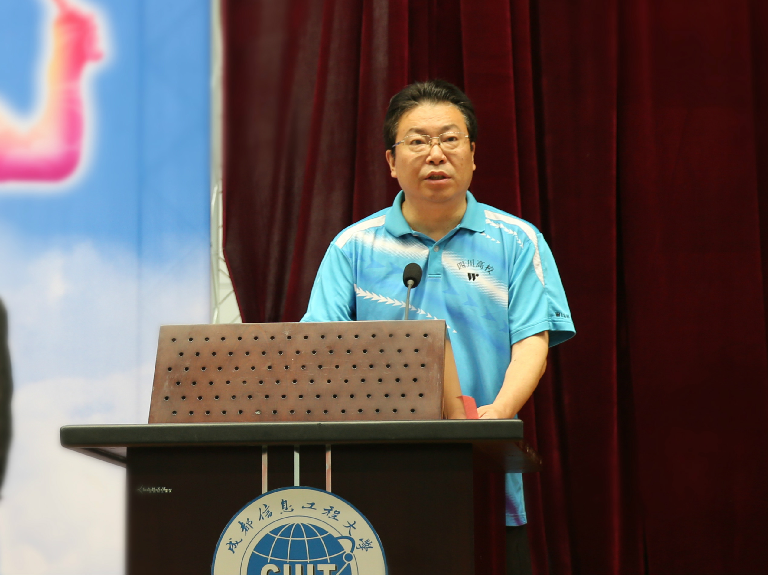 本次比赛由四川省教育厅主办,四川省学生体育艺术协会、四川省高等教育学会体育研究分会、成都市高校体育协会协办,太阳集团承办。四川省教育厅体卫艺处副处长苗建平,四川省高等教育学会体育研究分会理事长邓跃宁、秘书长文烨,学校党委书记周激流、副校长于世祥参加开幕式。开幕式由于世祥主持。