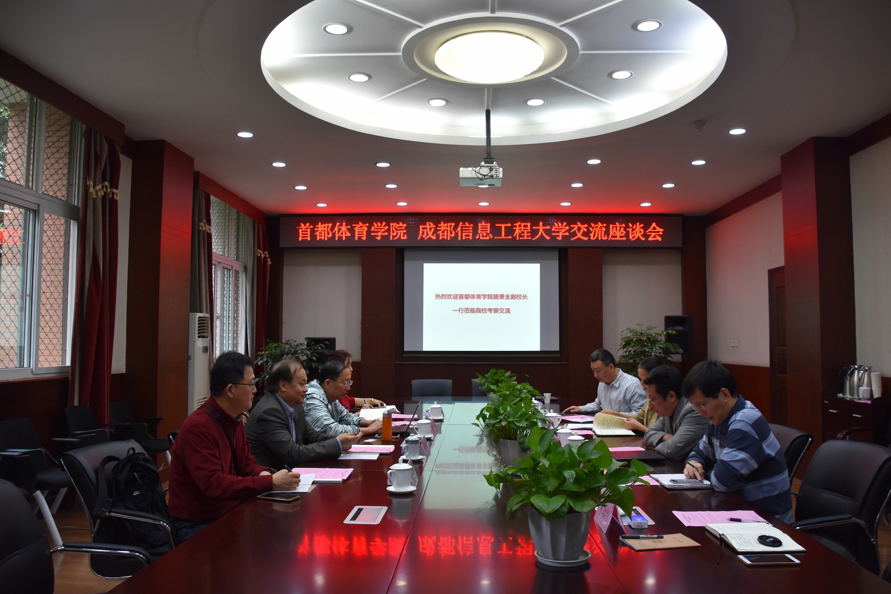 【本网讯】4月23日上午,首都体育学院副院长骆秉全、教务处副处长崔玉鹏一行4人来校访问交流。学校副校长马洪江,校督导组组长谢明元、教务处处长方睿、教师教学发展与评估中心主任吴四九及教务处相关工作人员与来访人员在行政楼六会议室举行了座谈交流。