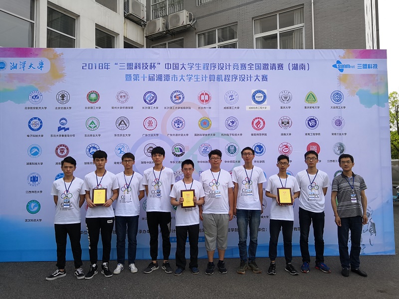 【本网讯】5月13日,2018年“三盟科技杯”中国大学生程序设计竞赛全国邀请赛(湖南)暨第十届湘潭市大学生程序设计大赛在湘潭大学落下帷幕,来自全国60所高校的177支队伍参加了比赛。太阳集团派出了三支参赛队共9名选手参赛,软件工程学院教师黄健为带队教师,经过5小时的激烈角逐,太阳集团三支参赛队伍获得了两银一铜的优异成绩。