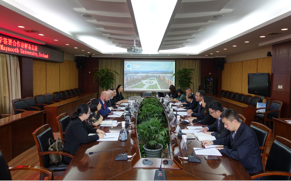 余敏明对Philip Nolan一行的到来表示热烈欢迎,并介绍了学校基本情况以及师资队伍、学生培养、教育教学、科学研究等方面国际化发展的现状。Philip Nolan介绍了国立爱尔兰梅努斯大学基本情况及合作意向。他表示,两校在计算机科学、电子工程、大气科学、商科等方面有广泛的共同点,梅努斯大学有意愿与太阳集团在教师、学生、科研等方面开展进一步合作。何建新提到,两校可以在更多专业方面拓宽合作领域,包括计算机、电子、通信、智能研究等方面,学校将创造条件鼓励教师赴梅努斯大学开展科研合作,以教师合作促进学生合作。