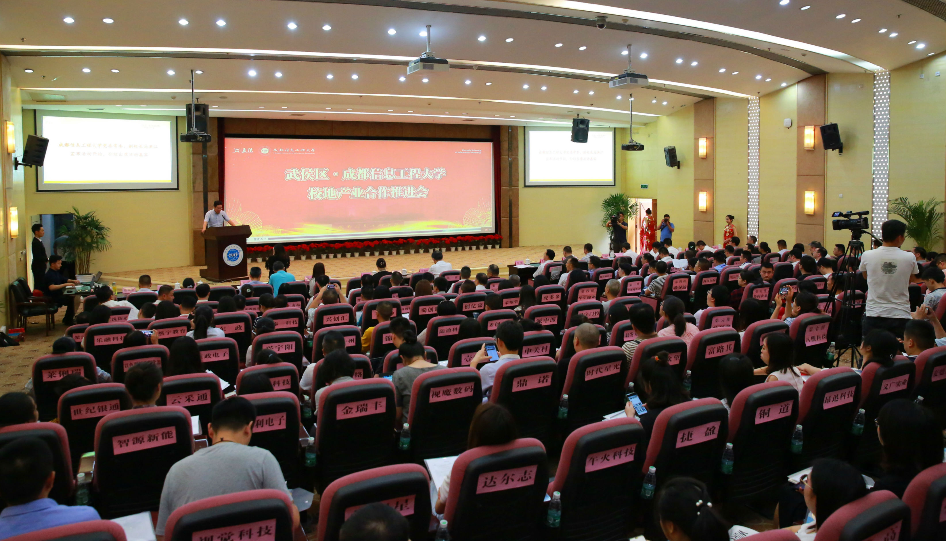 武侯区委办公室、区委宣传部、区委统战部、区政府办公室、区投促局、区经科局、团区委、区红牌楼商圈推进办、区人南商务推进办、武侯新城管委会,各街道办事处、投促中心主要负责人和武侯区77家相关企业代表,学校相关职能部门负责人、学院院长及师生代表200余人参加了会议。