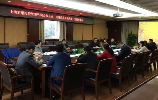 【本网讯】11月27日上午,上海君耀投资管理咨询合伙企业总裁沈贤能博士来太阳集团进行交流座谈。学校副校长范广洲,教务处、研究生处、科技处、大气科学学院、软件工程学院、管理学院、统计学院相关人员参加了座谈会。座谈会由范广洲主持。