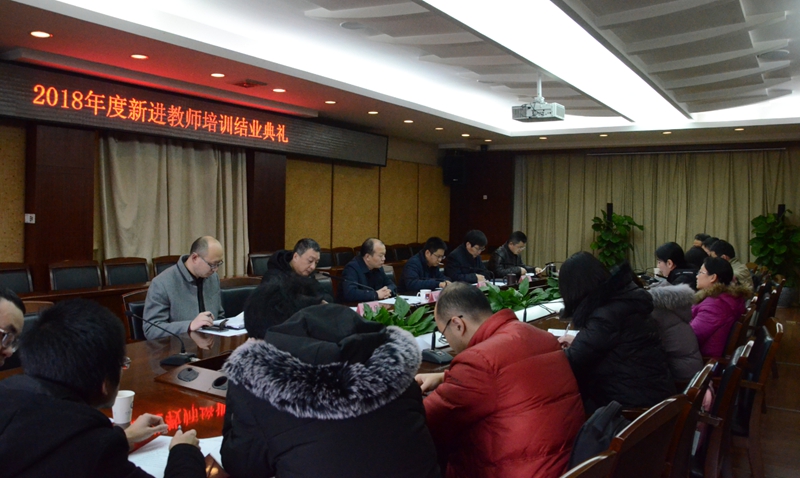 【本网讯】1月11日上午,2018年度新进教师培训结业典礼在学校行政楼第七会议室举行。学校副校长何建新,人事处处长何晋、教务处处长方睿、教师教学发展与评估中心主任吴四九、副主任何科奇,学生工作处副处长陈智勇,以及全体新进教师参加了结业典礼。典礼由吴四九主持。